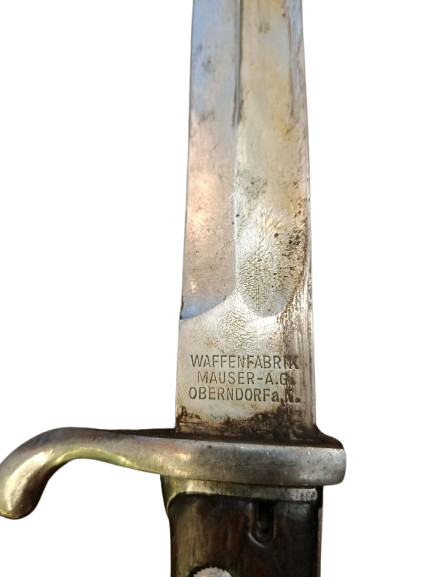 Le modèle 1898-05, le plus courant dans l'armée allemande fut surnommé « lame de boucher » ou coup choux , bouton fonctionnelle en belle état fabrication Waffenfabrik Mauser A.G. Oberndorf a.N....