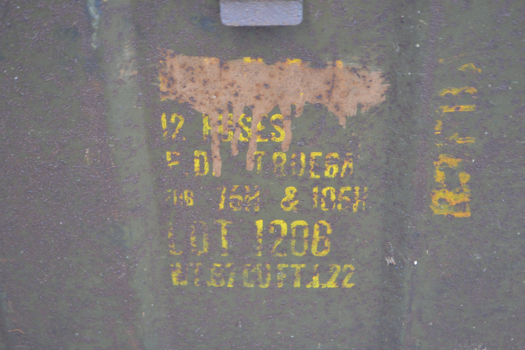 Caisse pour 12 fuses us 75H ou 105H 50.0 EUR Caisse pour 12 fuses us 75H ou 105H bien daté 1944 complète avec sont couvercles ,