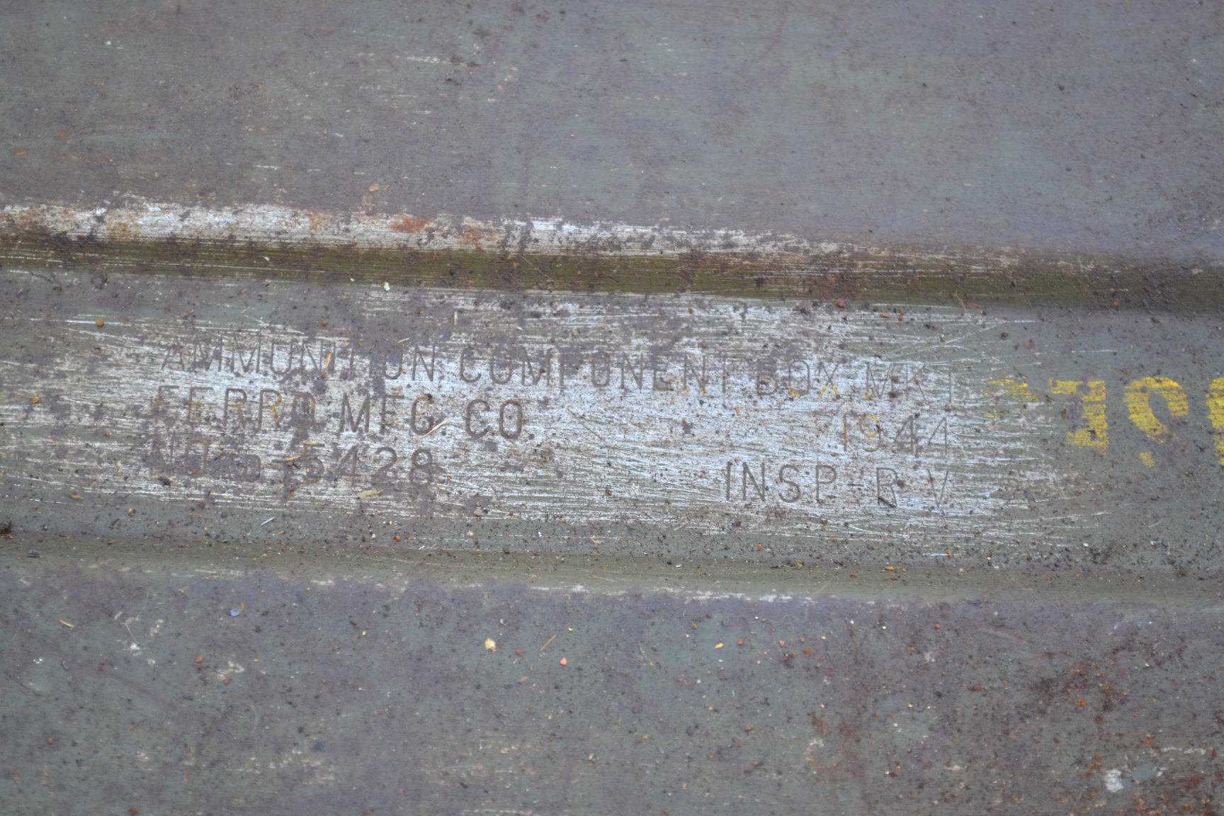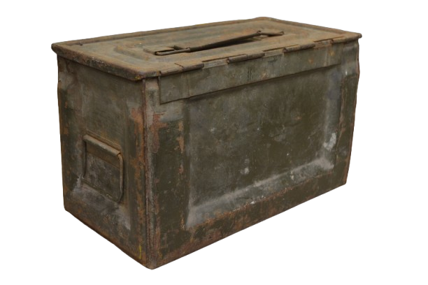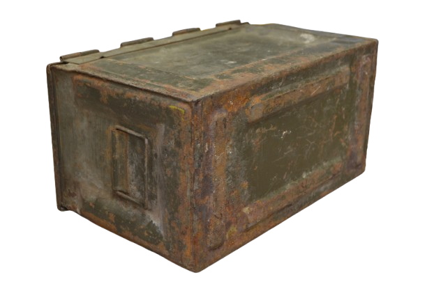 Caisse à munitions US Cal. .50 M2 40.0 EUR Légère corrosion présente.  fabrication MODERN  Caisse complète, charnière et fermoir fonctionnel. D'origine ww2