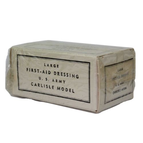 Pansement Large first-aid dressing carlisle model 6.0 EUR PANSEMENT LARGE FIRST-AID DRESSING CARLISLE MODEL Pansement individuel du modèle Carlisle Model , réservé aux différents kits médicaux. Original WW2 Dimensions : 10,5X5X6,5cm environ Jamais ouvert.