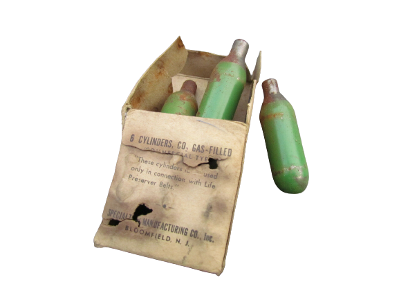 Cylindre de CO² us ww2 mae west et ceinture de sauvetage