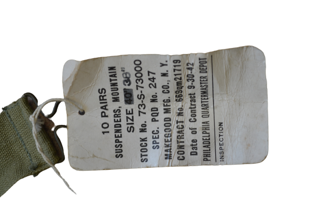 US WW2 suspenders trouser mountain 25.0 EUR US WW2 suspenders trouser mountain bretelles de pantalon des troupes de montagnes, d'origine deuxième guerre, en toile kaki clair avec attaches en métal. d'origine neuf de surplus ww2  vendu sans...