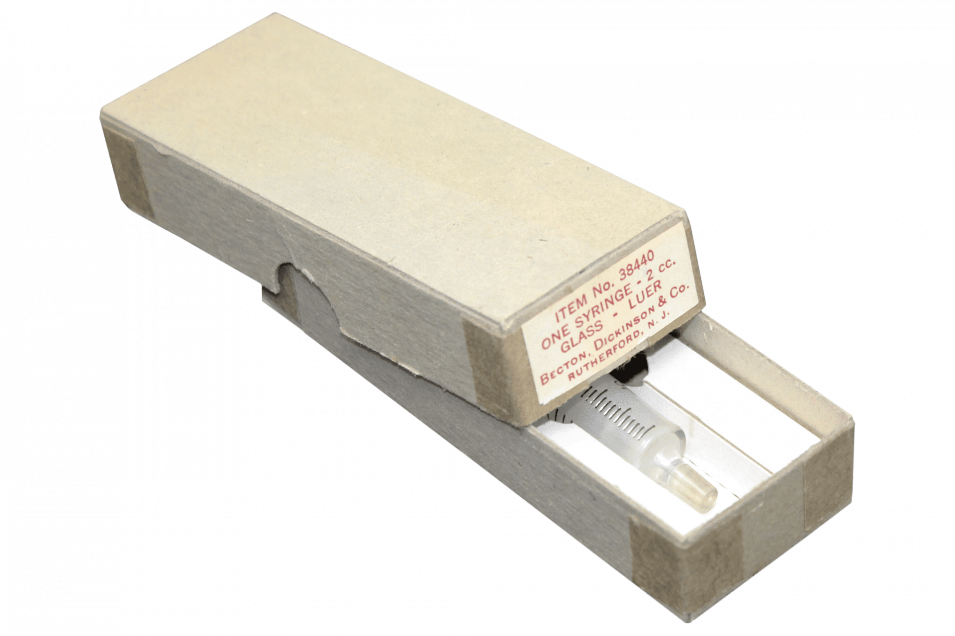 Seringue en verre 2CC ww2 15.0 EUR Seringue médicale en verre, US ww2 avec carton et étiquette, numéro Item 38440 d'origine ww2