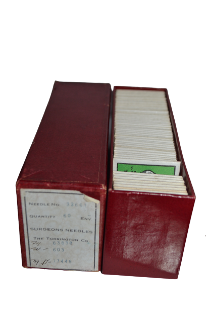 Boite de 60 Aiguilles, Chirurgiens, marque Excelsior 160.0 EUR Véritables boite de 60 aiguilles de chirurgien américaines de la Seconde Guerre mondiale fabriquées par The Torrington Co. Accessoires de la trousse chirurgicale mineure transportés dans le sac...