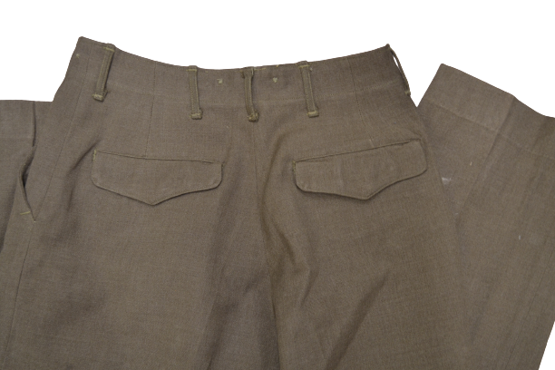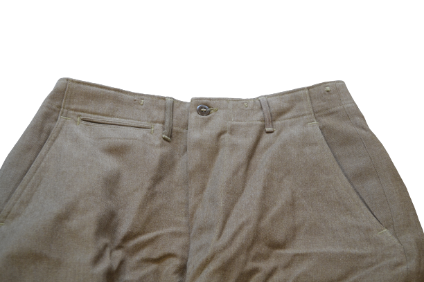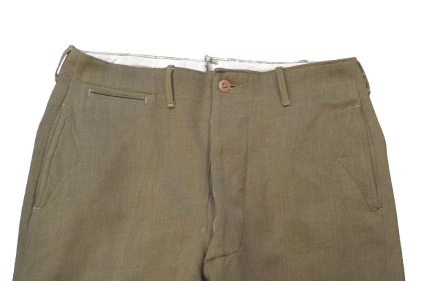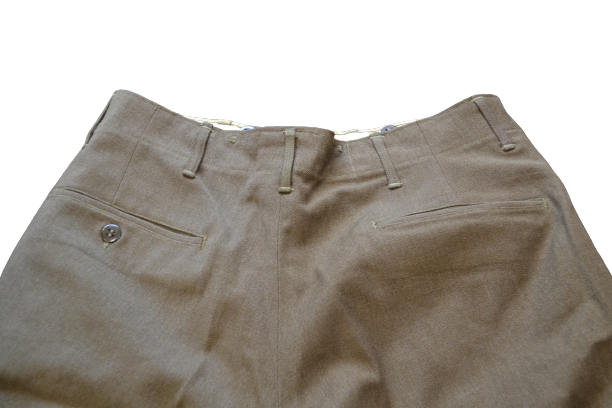 Pantalon (moutarde) troupe US  1942 100.0 EUR Pantalon en serge de laine de l'US Army, d'origine Deuxième Guerre, du modèle standard commun à tous les services. Cet exemplaire ne présente pas le rabat en flanelle derrière la braguette pour la...