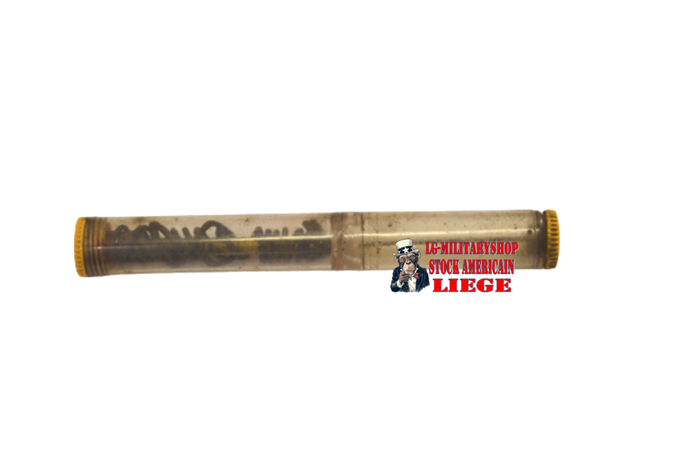 Huilier US Springfield 1903 ou Garand type 1 15.0 EUR Huilier rond en acier pour le fusil Springfield 1903 ou fusil Garand début de conflit. D’un coté, l’aiguille de graissage, de l’autre coté, logement pour le lavoir et la brosse. Vide d’huile et...
