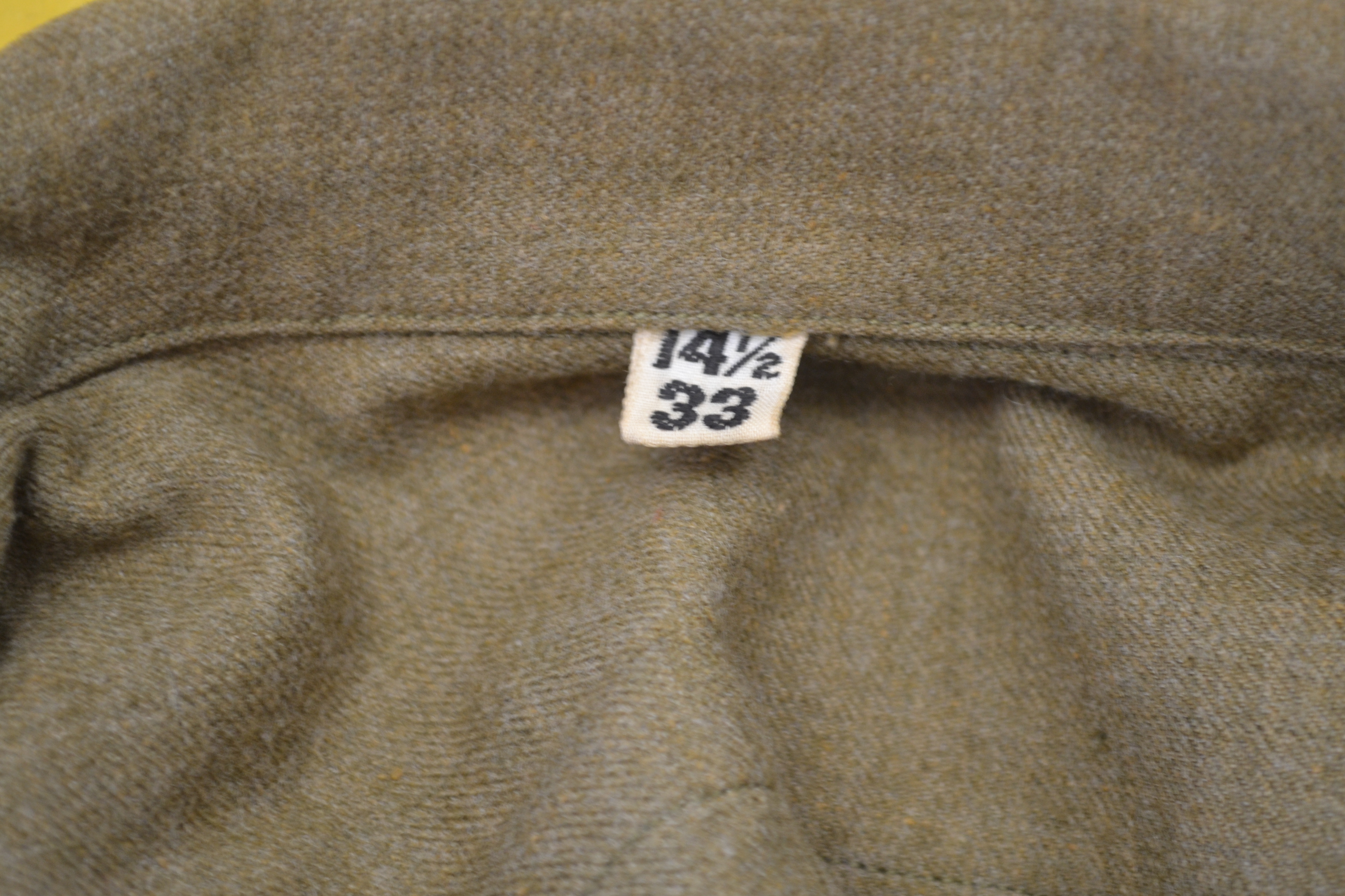 CHEMISE MOUTARDE 9th/3RD ww2 75.0 EUR En drap de laine dit moutarde, tous les boutons sont présents, type sans la bavette anti-gaz. Etiquette dans le col indiquant une taille 14 1/2-33.  Etiquette du fabricant absente. Patch de la...