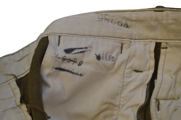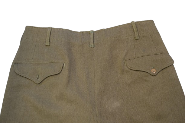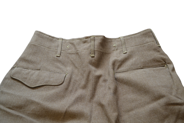 PANTALON "TROUSERS, FIELD, 55T-35431-2 75.0 EUR TROUSERS, FIELD  Ce pantalon comporte deux poches révolver à ouverture en biais au niveau des hanches, une poche pour montre à gousset et de deux autres poches à l'arrière du fessier, avec un rabat...