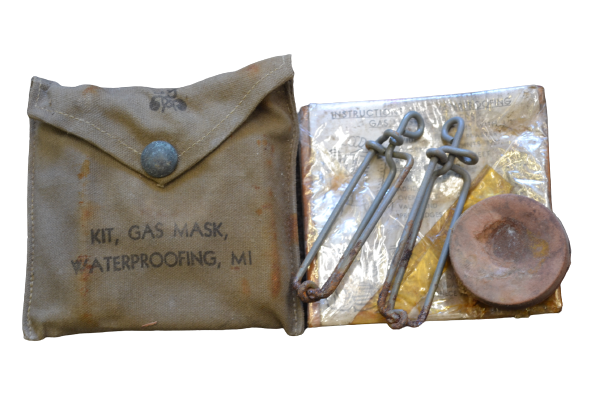 Kit M1 d'étanchéité pour masque à anti-gaz 15.0 EUR Ce kit M1 est utilisé durant la Seconde Guerre mondiale par les soldats de l'armée américaine  pour l'étanchéité du masque à gaz US, où il est glissé dans la pochette.  Ce kit est original sortie...