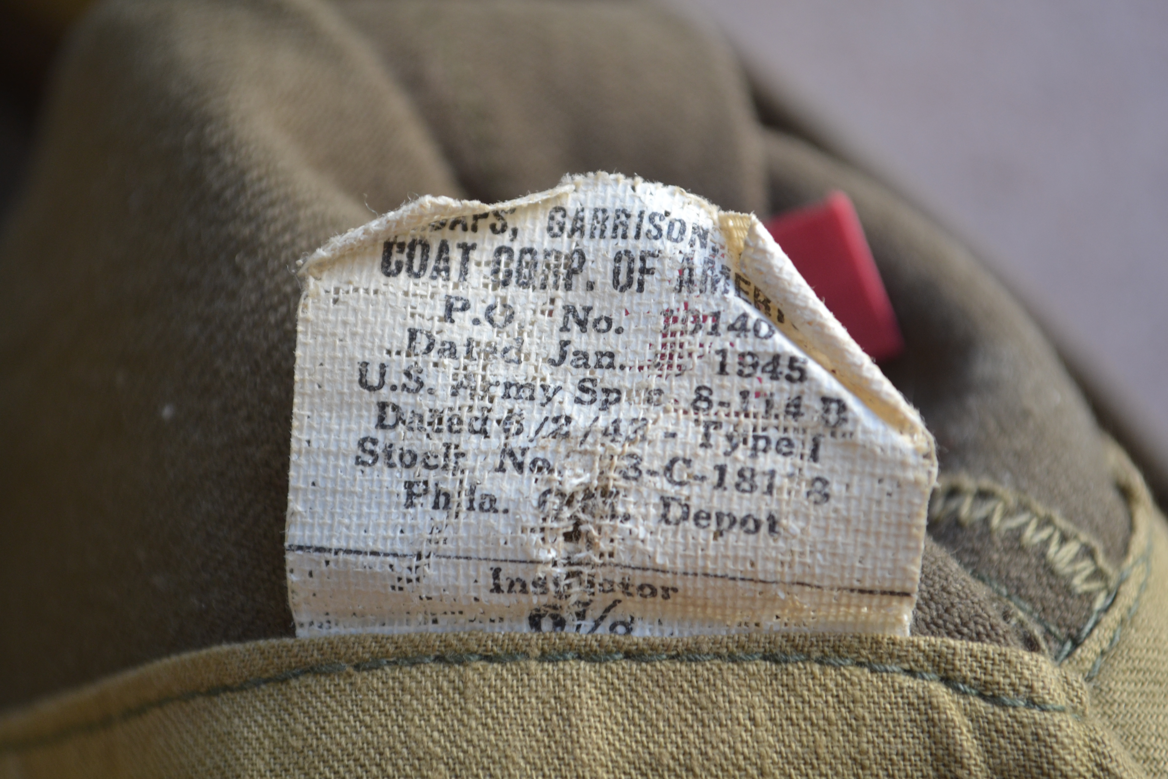 CALOT garrison chino artillery 1946 () 12.5 EUR garnison de l’armée américaine de la Seconde Guerre mondiale avec passepoil Rouge    pour les hommes et les sous-officiers de l'artillerie  datée 1946 trace d'usure