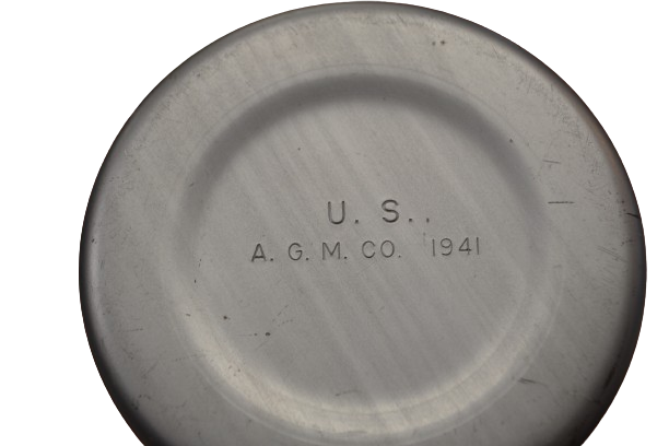 POT À LAIT OU SIROP. WWII 1941 45.0 EUR En aluminium, couvercle et anse présentes. Fabrication A.G.M CO 1941.. A noter une certaine usure de la pièce belle pièce sans  sont bec verseur ;