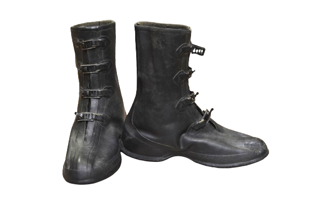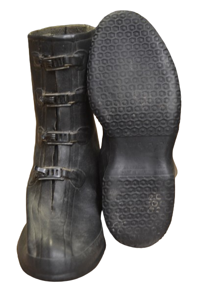 overshoes arctic all rubber U.S. WW2 70.0 EUR En toile caoutchouté noire. Semelles en caoutchouc. Paire homogène. Quatre crochets de fermeture. Semelles marquées Made IN USA SERVUS, taille 8 probablement .   A noter une certaine usure et...