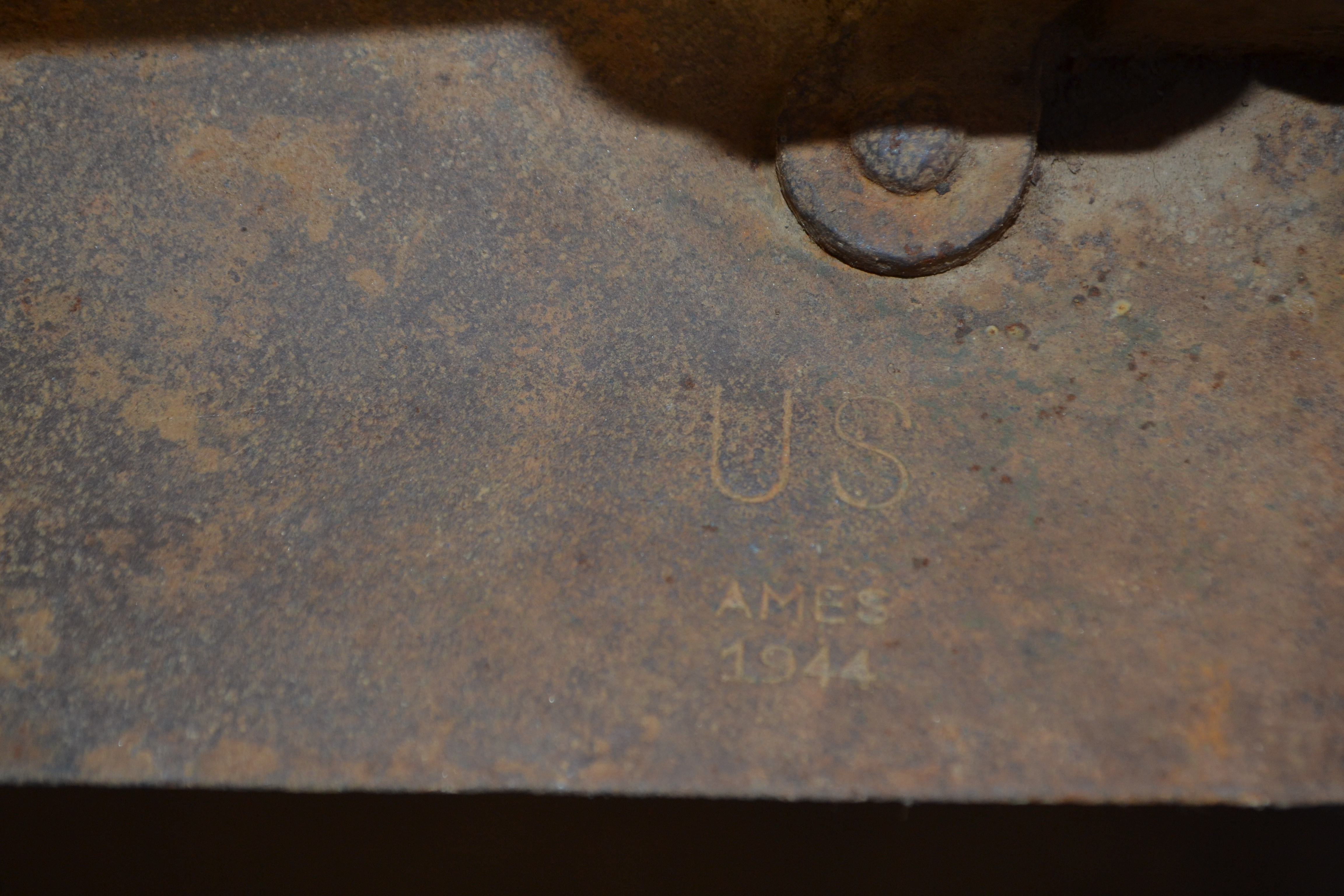 Pelle pliante US 1944 60.0 EUR Pelle pliante M-1943 Bien datée AMES 1944 et son étui ou housse de transport 2eme type à crochet réglable (datée 1944) , ensemble original Seconde Guerre mondiale. Pelle utilisée avec trace de...