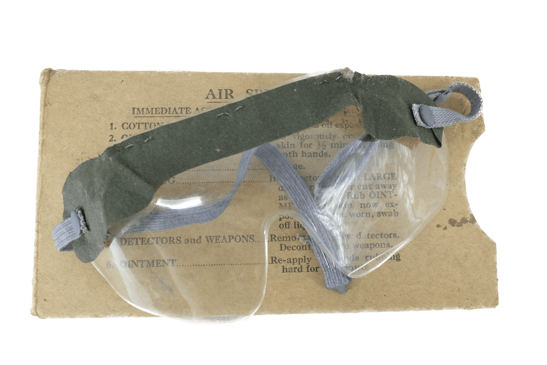 Masque de protection contre les gaz de fabrication Anglaise. Ensemble de 1944 d'origine, cet ensemble n'a pas été reconditionné après Guerre.