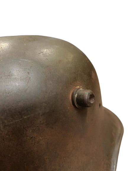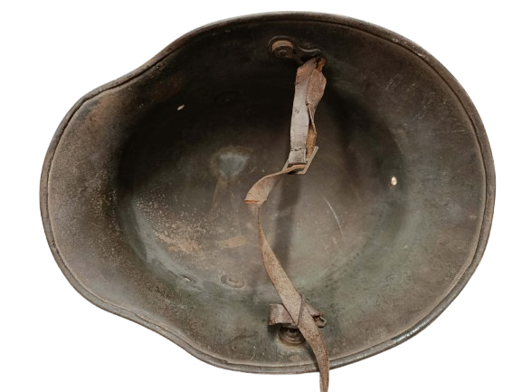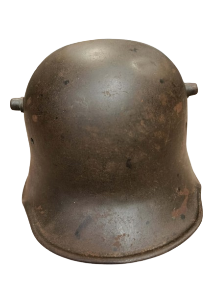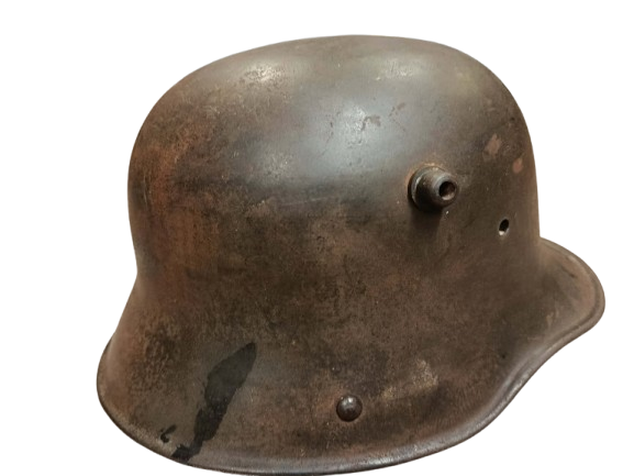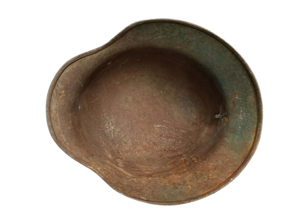 Coque de casque allemand WWI. Coque en métal, peinture quasi absente. Intérieur et jugulaire absent. . A noter une certaine usure et oxydation de la pièce.