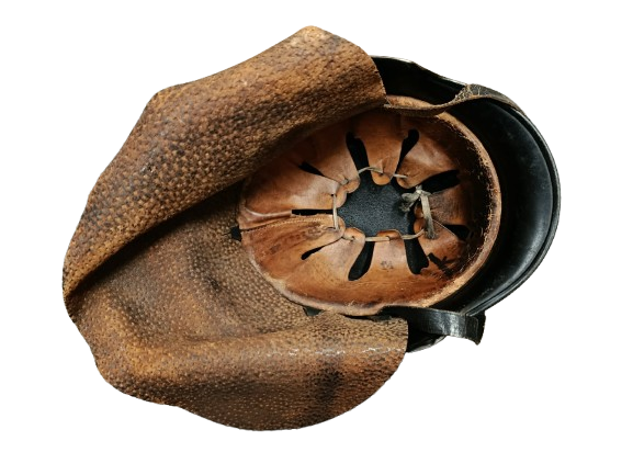Casque Allemand modèle 1934 à destination des pompiers. Modèle utilisé par la police Allemande. Usure légère, casque complet avec sa coiffe et sa jugulaire PLUS sont couvre-nuque insigne...