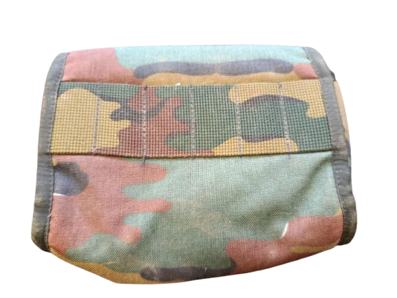 pochette armée belge anciens camo , la pochette se ferme via scratch ; il se fix sur le ceinturon ou autre via 2 attaches Alice (vendue séparément ) dimension 20x12cm