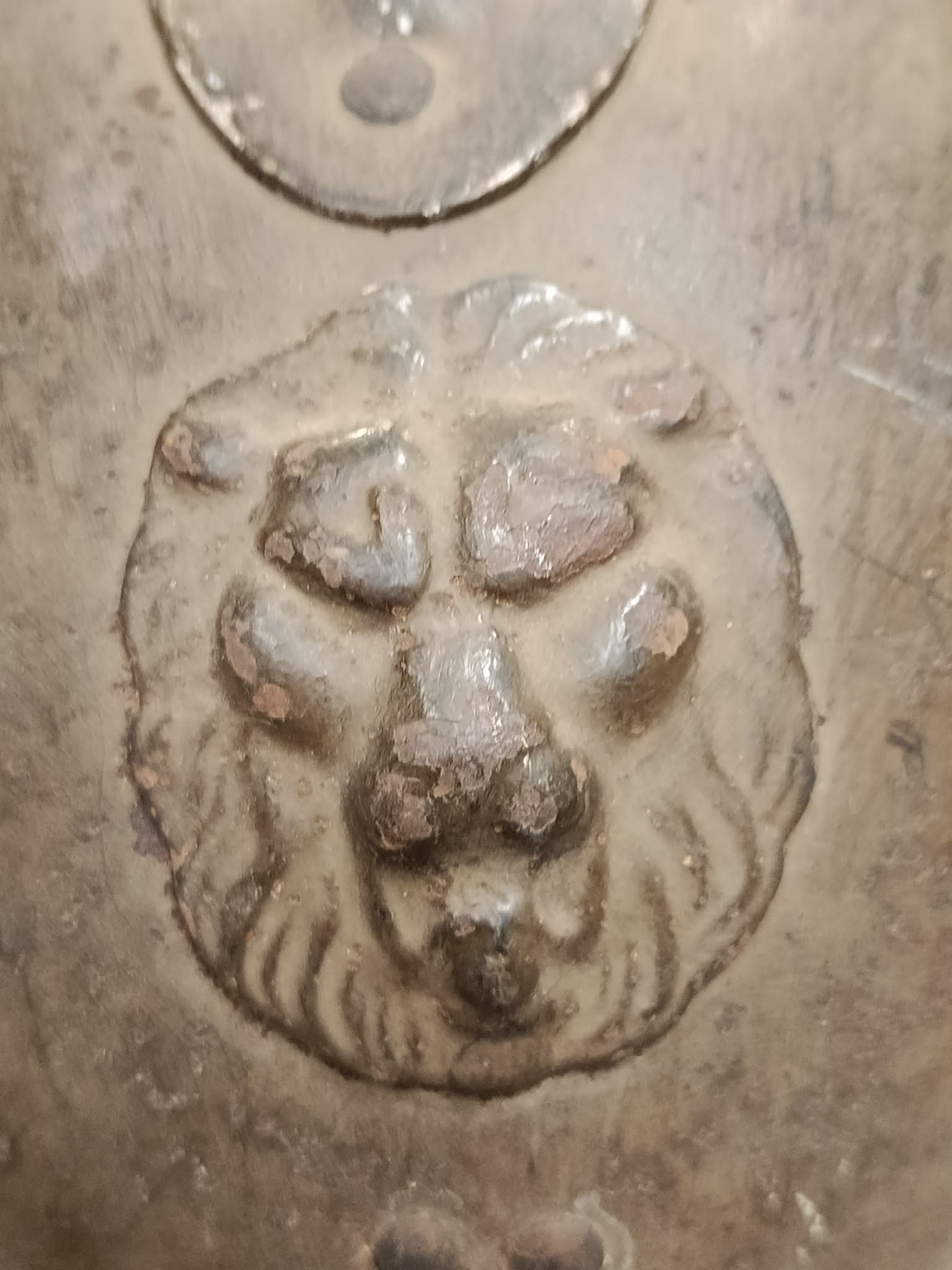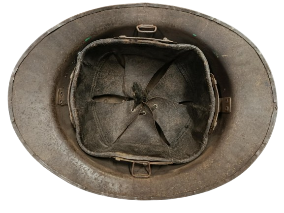 Beau casque Belge modèle 1931 . Attribut frontal "au lion" en tôle emboutie en peinture d'origine. Peinture kaki d'usine présente sur le casque . Coiffe en cuir complète possédant l'intégralité de...