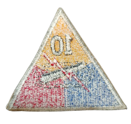 Insigne d'épaule de la 10th Armored Division d'origine Deuxième Guerre. La division combat en Lorraine dès octobre 1944, puis participe combat à Bastogne en décembre 1944, aux côtés de la 101st...