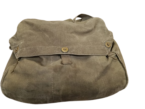 Musette M6 de masque à gaz Lightweight, origine Seconde Guerre mondiale. Fabrication précoce (1943), en toile Olive Drab No. 3 (beige). Après le débarquement nombre de Gi's se débarrassèrent de...