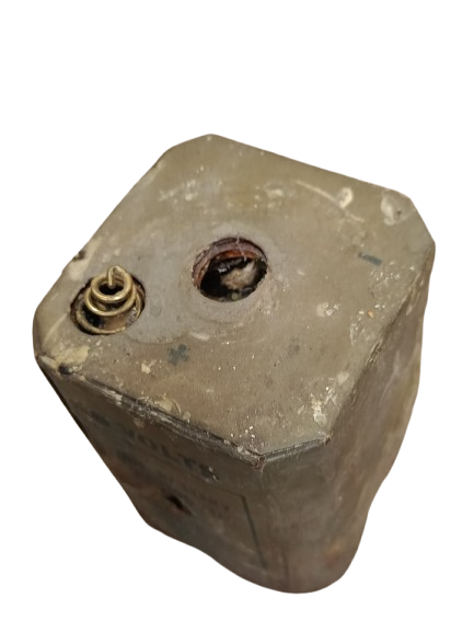 Batterie/pile BA-200/U US WW2 En bon état général. Peinte en OD7. Beau marquages sur le devant. Fabrication BOND electric corp Ressort présent. Marquages + et - présents. Pile devenant compliqué...