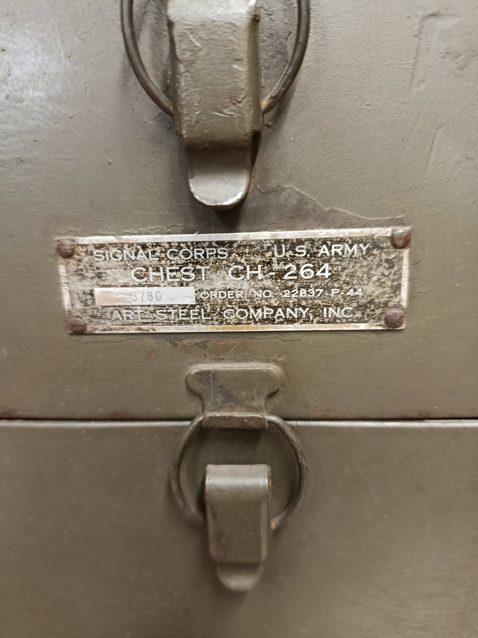 Chest CH-264 est un boîtier de rangement en métal utilisé par le Signal Corps de l'armée américaine pendant la Seconde Guerre mondiale Usage : Il servait principalement à stocker des pièces de...