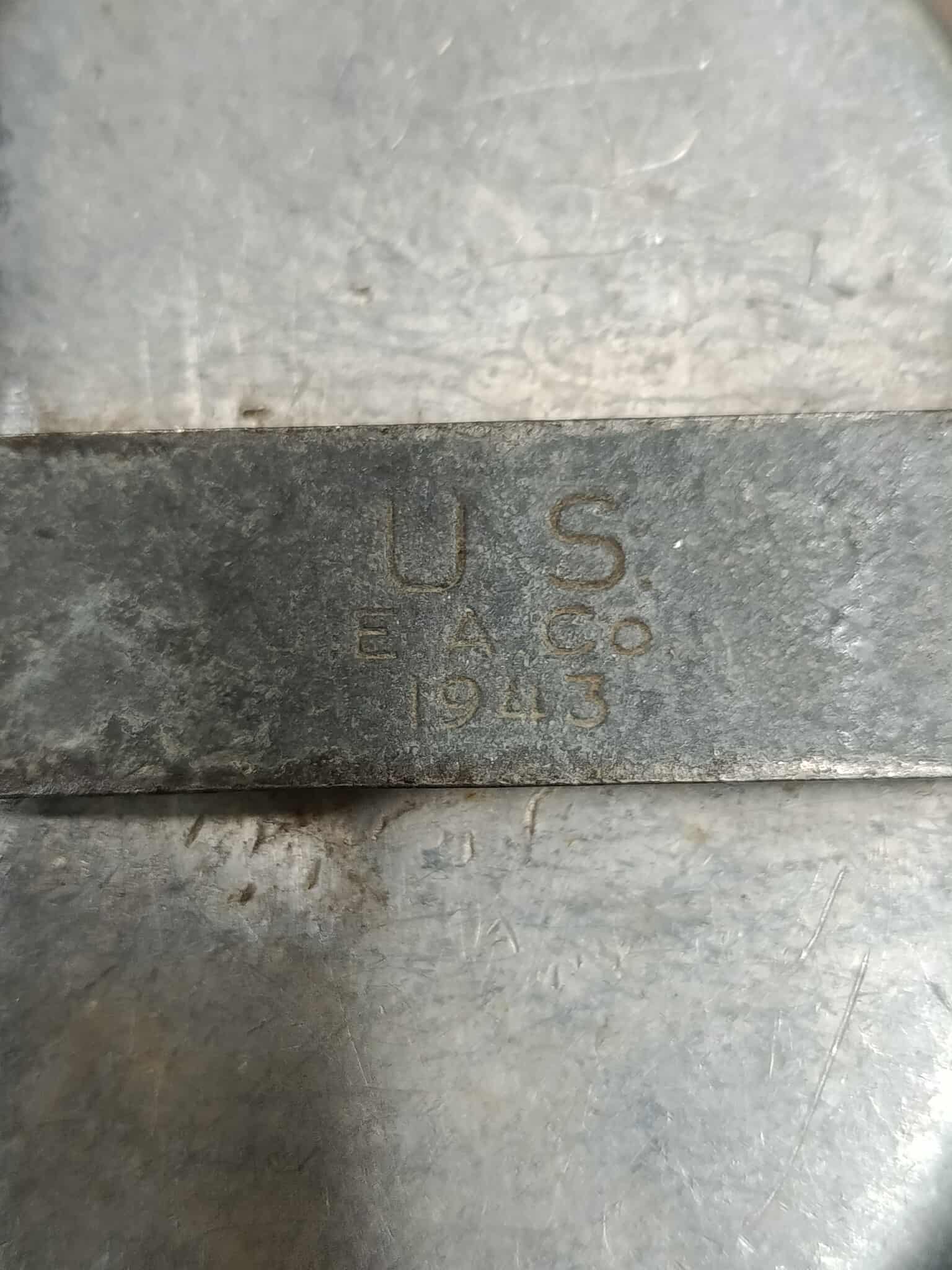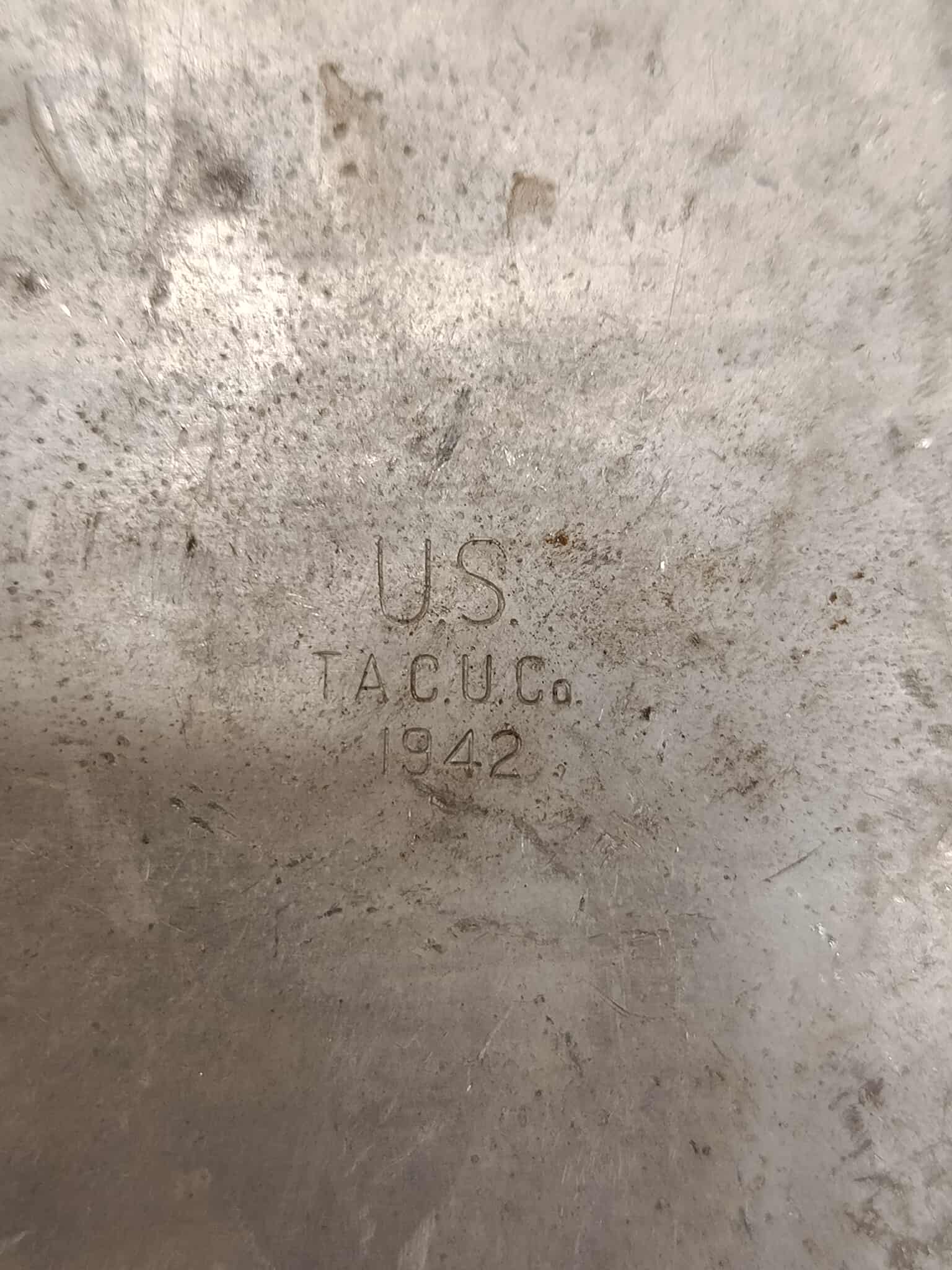 bidon fabriquée par TA.CU CO en 1942 bouchon plat , accompagnée d'un quart produit par E.A.Co. et daté 1943.