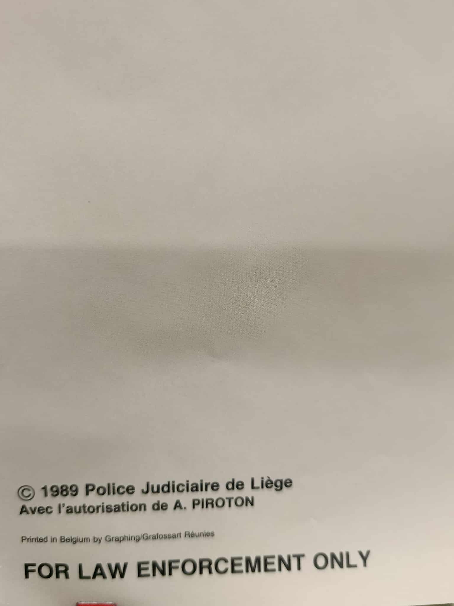Cible d’entraiment au tir dessinée par Piroton pour la Police Judiciaire de Liège en 1989. Munie de l’inscription “© 1989 Police Judiciaire de Liège. Avec l’autorisation de PIROTON