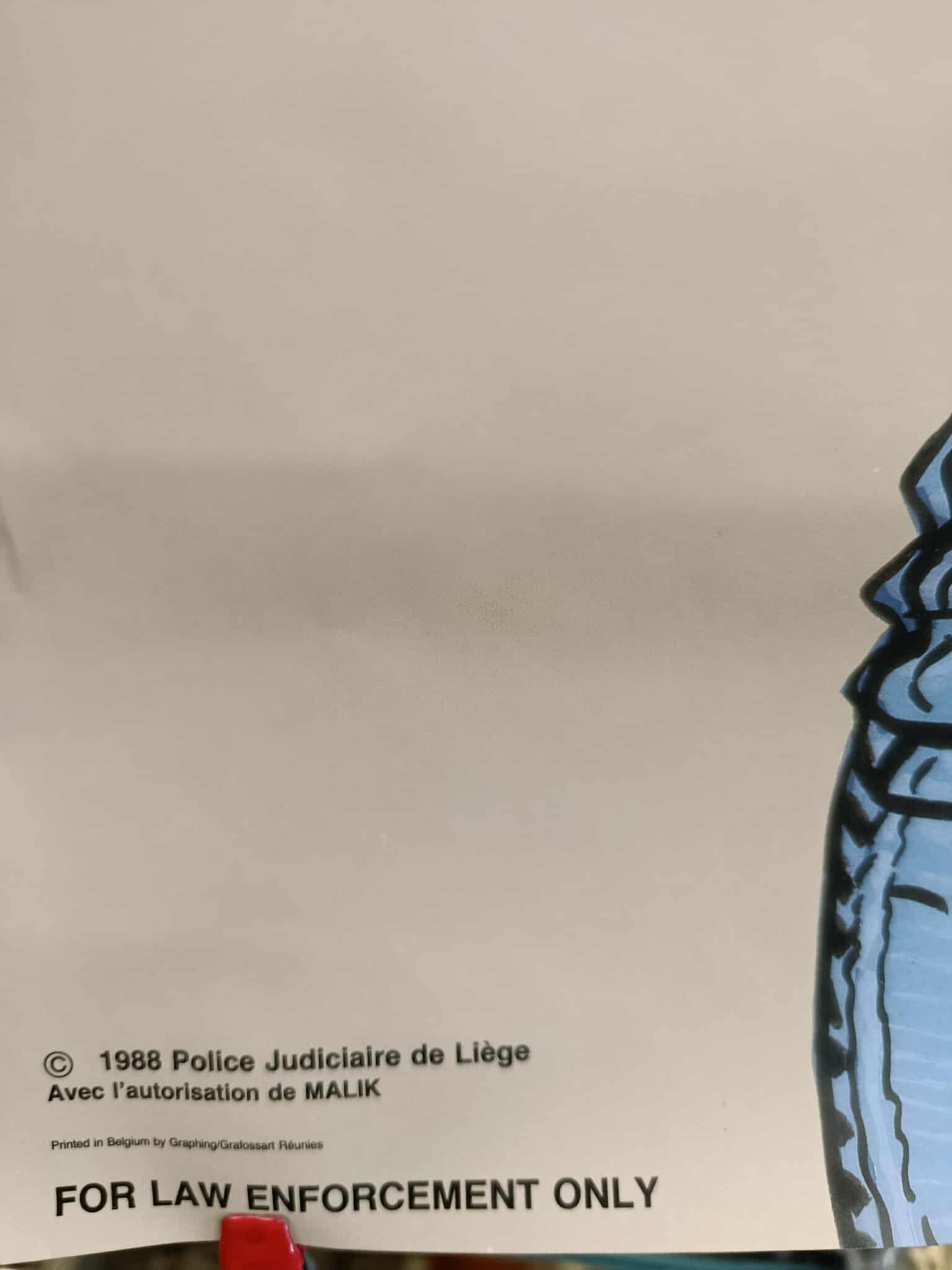 Munie de l’inscription “© 1988 Police Judiciaire de Liège. Avec l’autorisation de MALIK