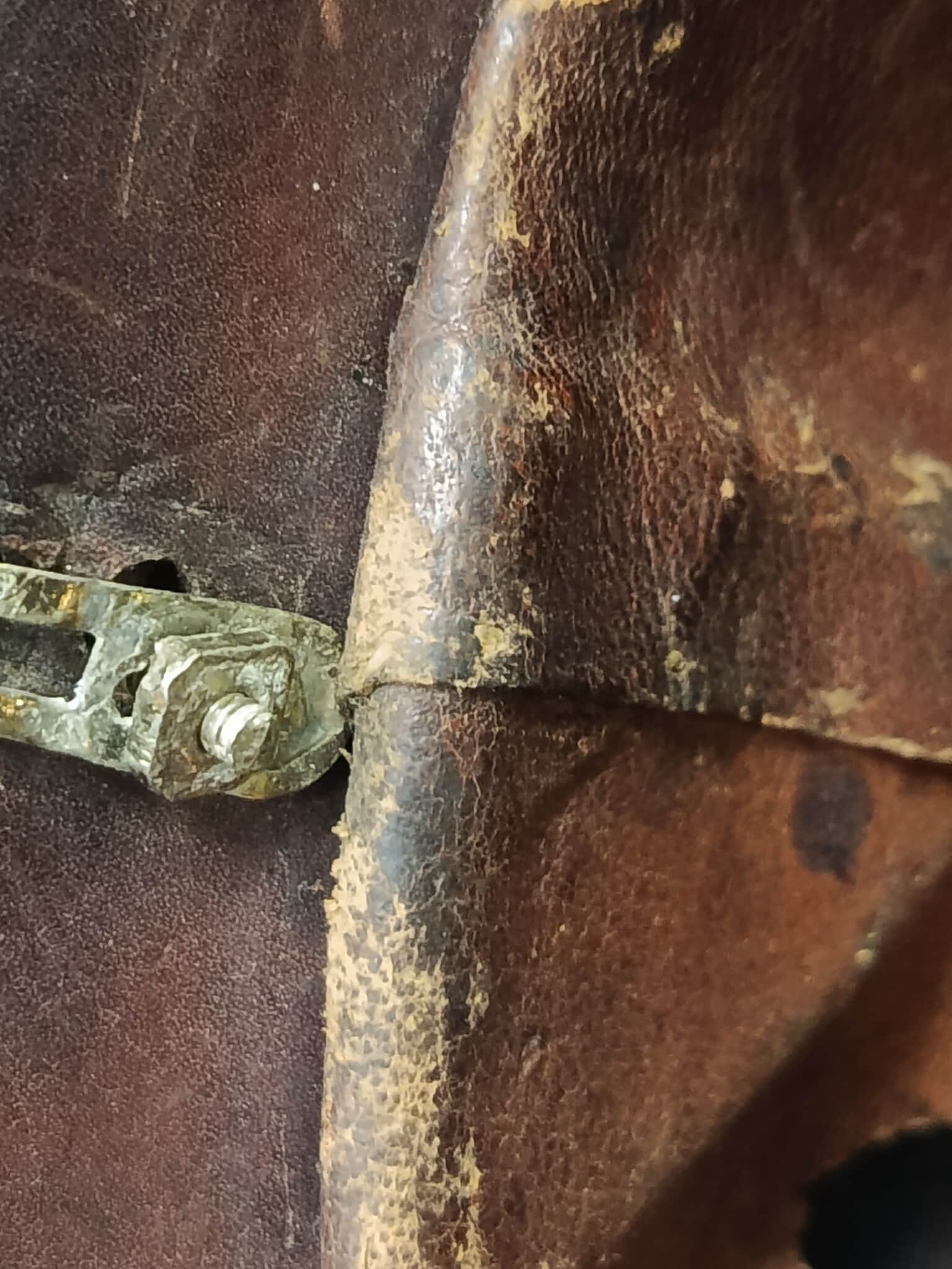 Intérieur de coiffe en cuir fin brun à 9 dents de loup