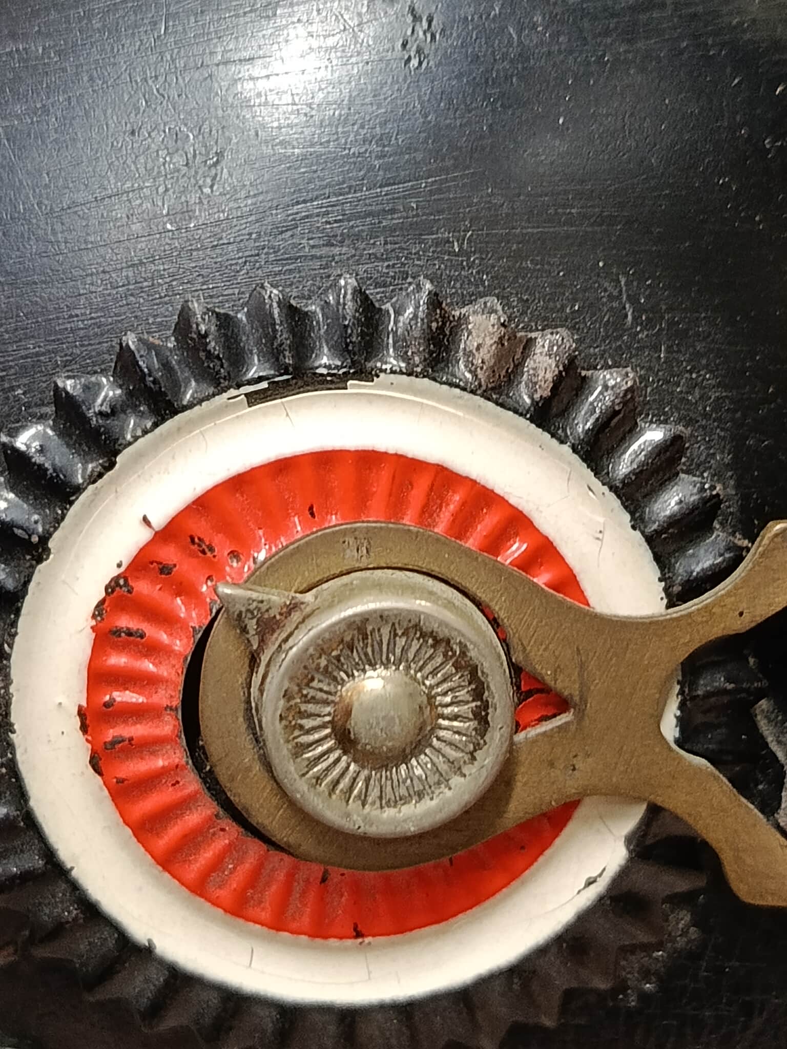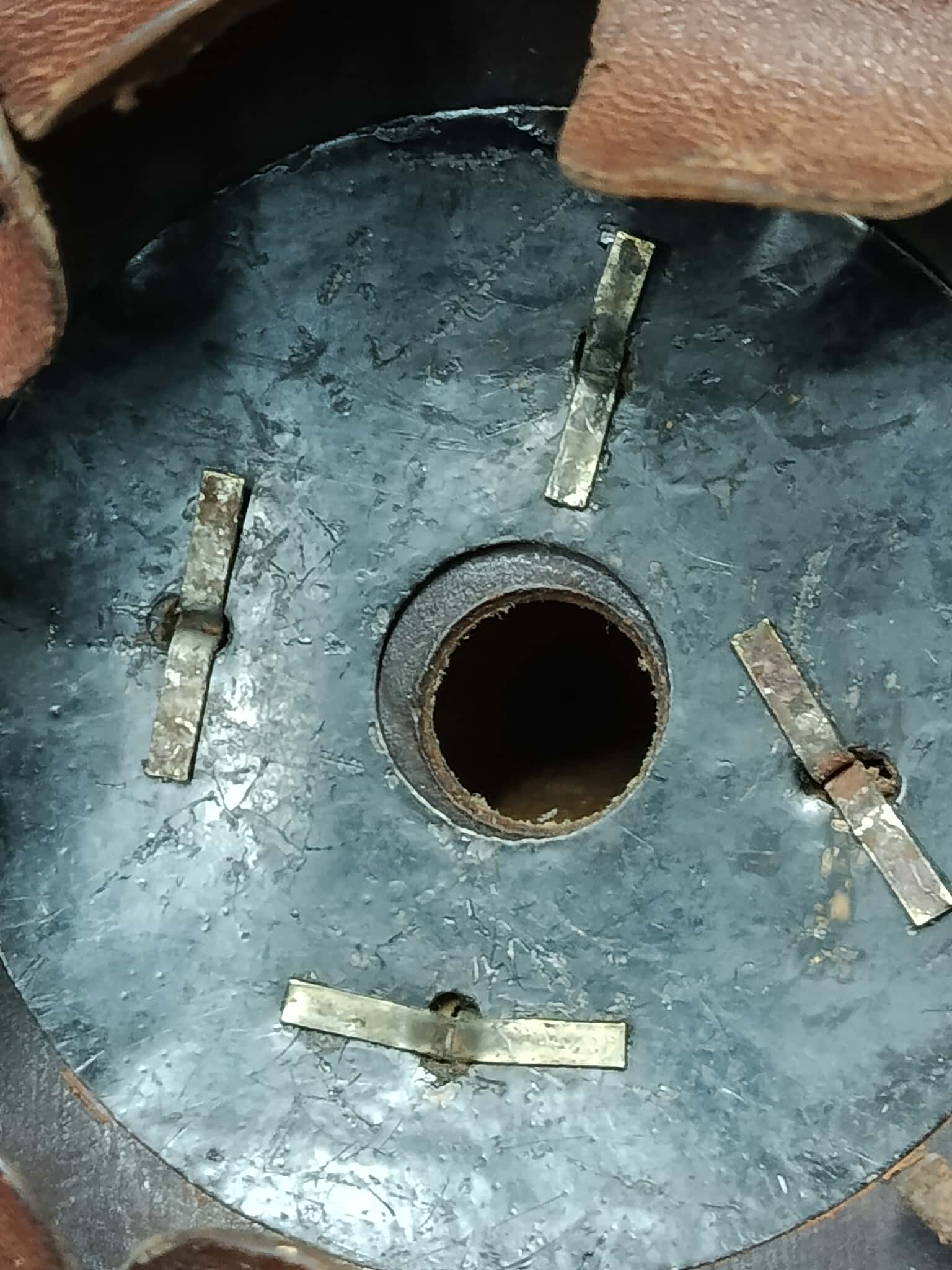 Bombe coiffée d'une pointe, fixée sur une base ronde rivetée par quatre rivets demi-sphériques,