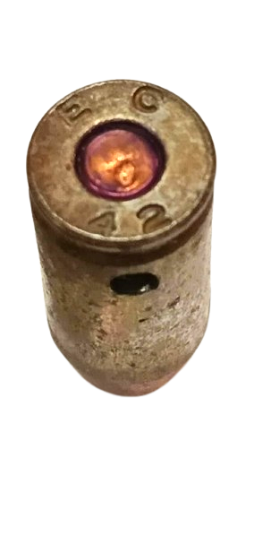 Matériel non classé, détention libre. : Munition neutralisée : munition dont le projectile a un diamètre inférieur à 20 mm et dont la chambre à poudre présente un orifice latéral d’un diamètre au moins égal à 2 mm, ne contenant plus de poudre et dont l’amorce a été percutée