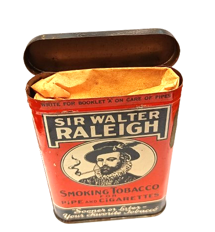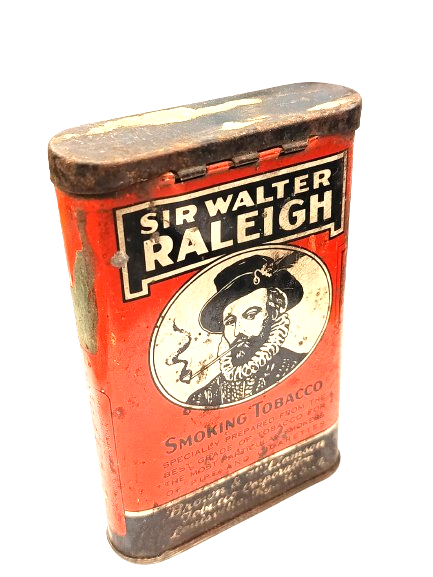 Boite à tabac américaine Deuxième Guerre Mondiale. US WW2. SIR WALTER RALEIGH Tobacco pipe & cigarettes
