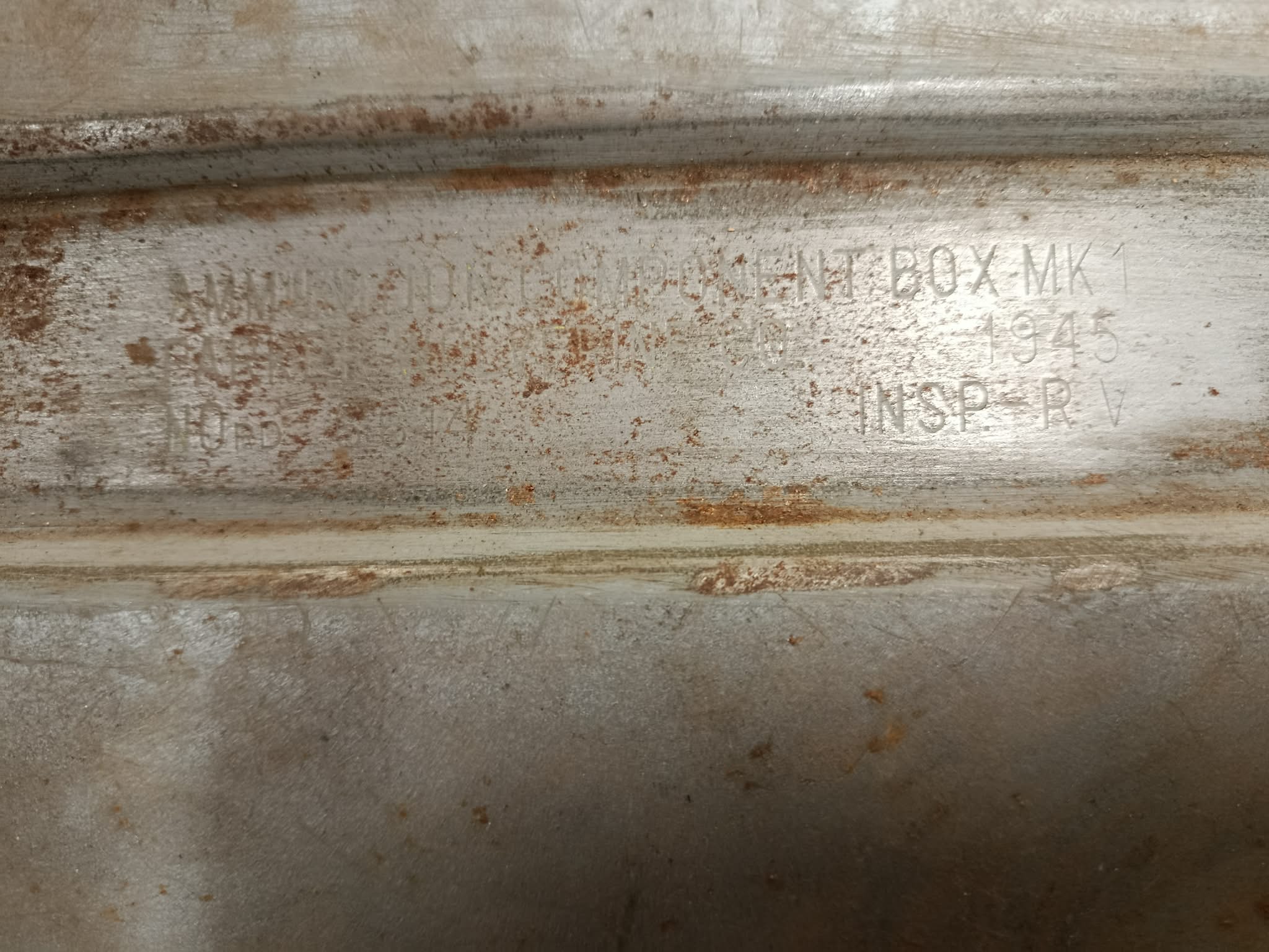 caisse datée 1945 couleur gris marquage post ? ,,,