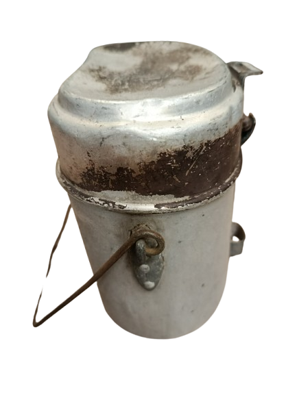 Gamelle allemande en aluminium, d'origine Deuxième Guerre, datée 1938 pour la partie basse et 1939 pour le couvercle.