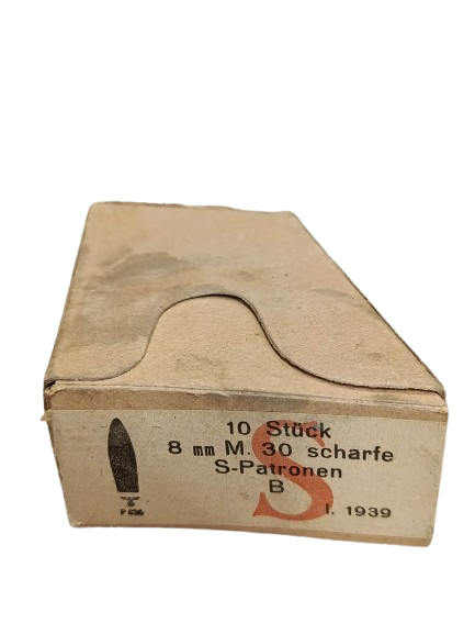 Cette boîte correspond à des munitions militaires 8x56mmR Mannlicher produites en Autriche sous occupation allemande en 1939